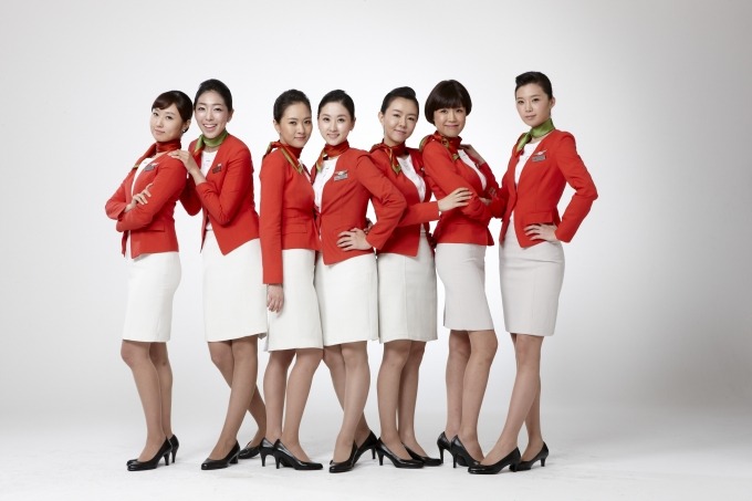 붉은색이 강렬하게 느껴지는 티웨이 항공의 유니폼입니다. 몇년전에 모 드라마에서도 배경으로 나온 티웨이 항공의 유니폼인데요, 티웨이 항공이 몇년전 국내 항공사 중 처음으로 승무원 헤어스타일 자율화를 시작해 참 인상깊게 보았던 기억이 납니다. 그때 당시에는 약간 정리 안된 느낌이었어요, 유니폼은 단정한데 머리는 제각각? 이런 느낌. 이제는 대부분의 항공사 승무원들의 헤어스타일이 비교적 자유로워져서 자연스럽게 멋져보입니다.