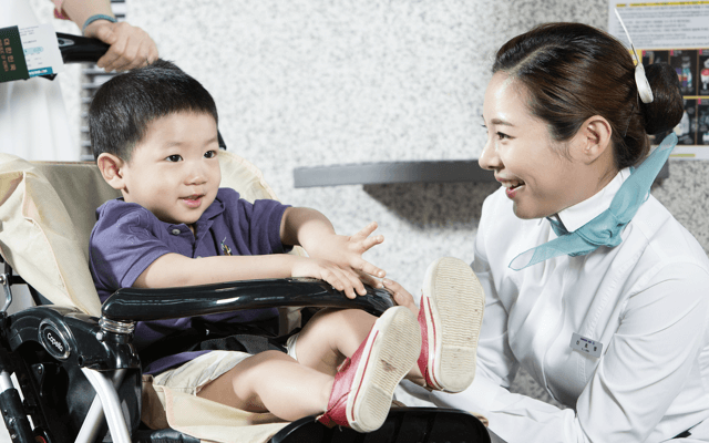 본인이 장애인 승객이거나, 장애인 승객의 동행이라면 탑승게이트에서 줄 서지 마시고 앞쪽에 나가서 직원의 안내를 받아주세요