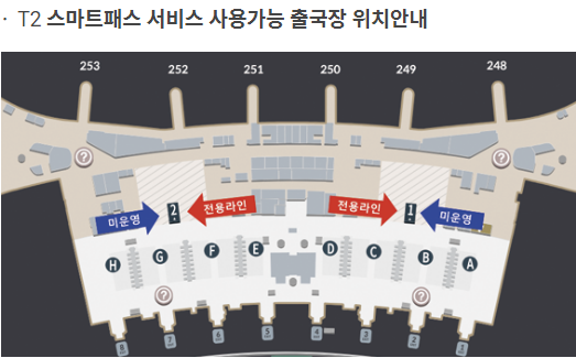 인천공항에는 제1여객터미널과 제2여객터미널 모두 스마트패스 전용 통로가 마련되어 있습니다.