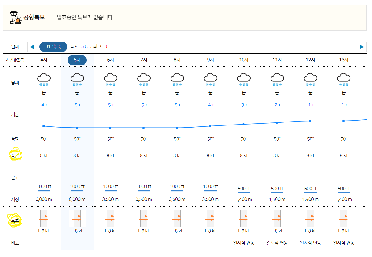3) 위에서 알려드린 [풍속], 그리고 [측풍] 수치를 확인한다